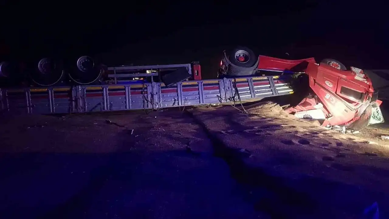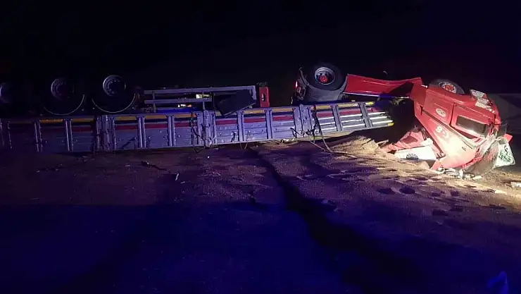 Afyonkarahisar'da sabaha karşı buğday yüklü tırın kontrolden çıkarak devrildiği anlar saniye saniye güvenlik kameralarına yansıdı. Ölen ya da yaralananın olmadığı kazada tonlarca buğday ziyan oldu.