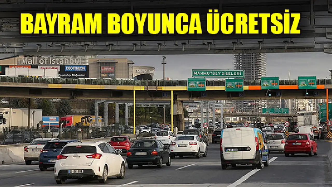 Buna göre, Kurban Bayramı tatili dolayısıyla bugün saat 00.00'da başlayan uygulama kapsamında, 18 Temmuz pazartesi saat 07.00'ye kadar, yap-işlet-devret projeleri hariç KGM sorumluluğundaki otoyollar ile 15 Temmuz Şehitler Köprüsü ve Fatih Sultan Mehmet Köprüsü'nden geçişler ücretsiz olacak.