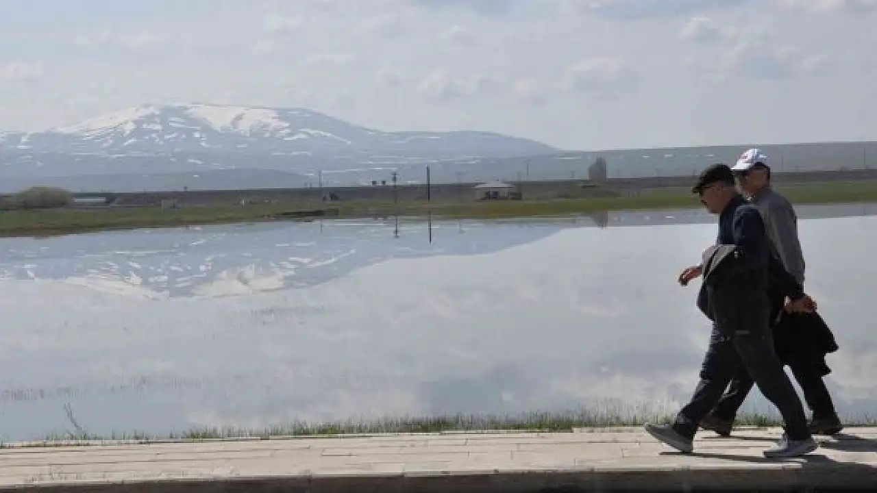 Öte yandan Kafkas Üniversitesi yerleşkesinde oluşan küçük gölet yaban hayvanlarına da kısa süreliğine ev sahipliği yapıyor. Su kuşlarının konakladığı gölet, etrafındaki dağların, bulutların yansımasıyla ilgi odağı olmaya devam ediyor.