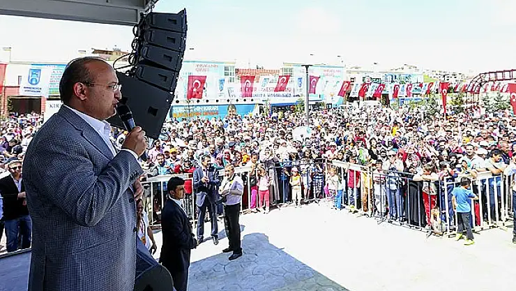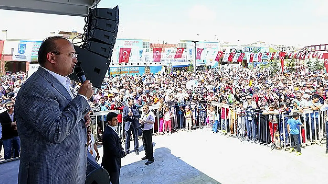"Öne HDP'yi attılar. Terör örgütü PKK, KCK, DHKP-C, paralel çete, hepsi şu an kol kola girmiş durumda. Diyorlar ki 'HDP barajı geçerse ancak o zaman AK Parti'yi devirebiliriz'. Bu terör örgütlerinin ittifakı ve önünde siyasi partilerin işbirliği var. MHP-CHP-HDP, hepsi flört ediyorlar. Birileri sanıyor ki 'HDPdemokrasi havarisi kesildi. Eğer bunlar baraj altında kalırsa demokrasi kalmaz'. Tam tersi, bunların güçlenmesi demek, demokrasinin zehirlenmesi demek. Davul Selahattin Demirtaş'ın boynunda, tokmak Kandil'in elinde. Onlar çalıyor bunlar oynuyor."