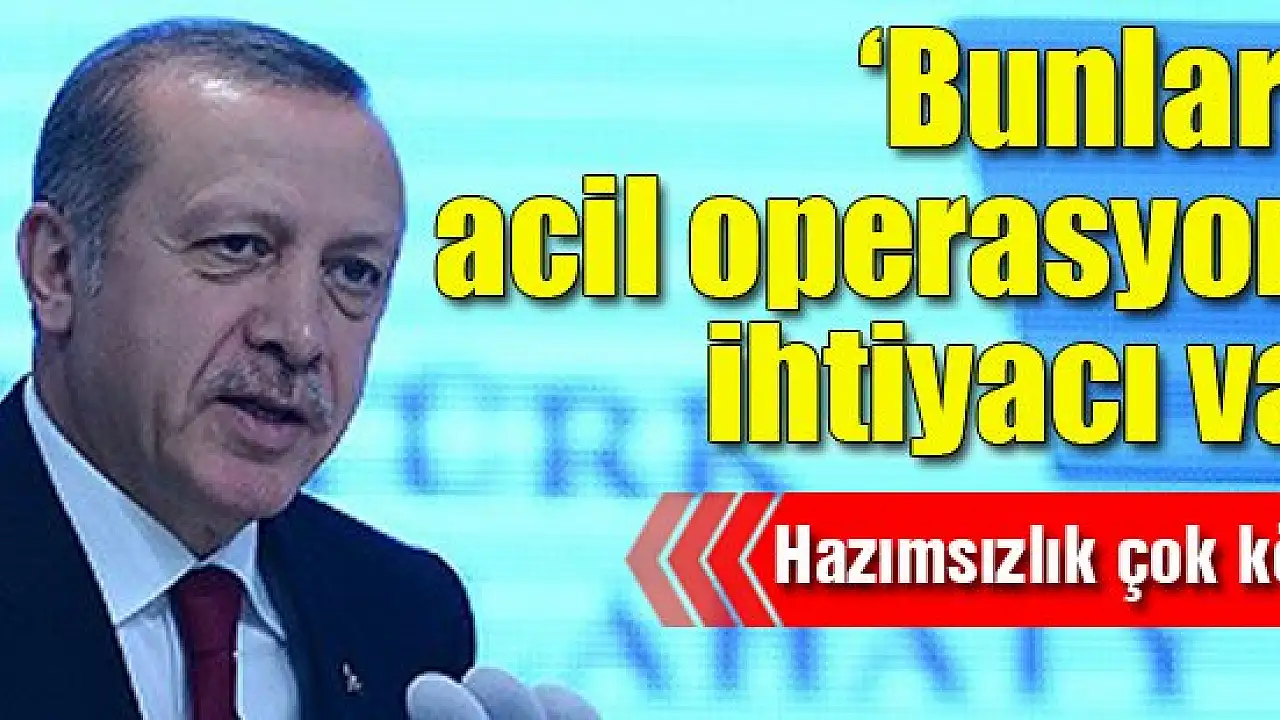 Cumhurbaşkanı Erdoğan, 150 milyon yolcu kapasiteli 3. havalimanını hazmedemeyenler bulunduğunu belirterek, 'Hazımsızlık çok kötü. Bunların acil operasyona ihtiyacı var' dedi.
