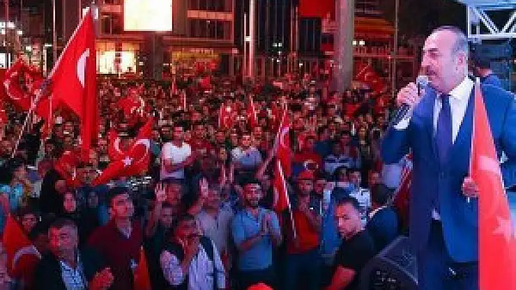 Çavuşoğlu, meydandaki halkın partiler üstü dayanışma sergilediğini görmekten duyduğu memnuniyeti dile getirerek, şöyle konuştu: