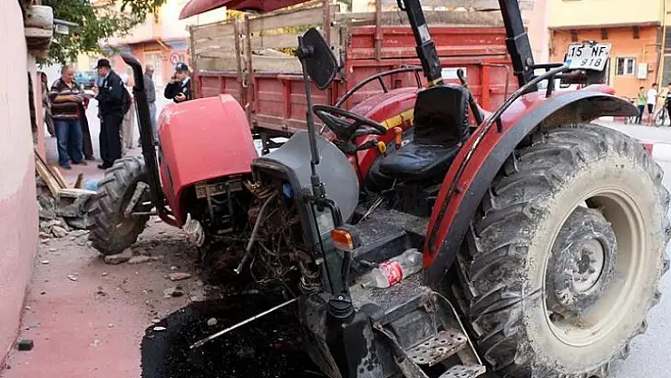 Burdur'da bir evin duvarına çarpmasının ardından ikiye bölünen traktörün sürücüsü yaralandı.