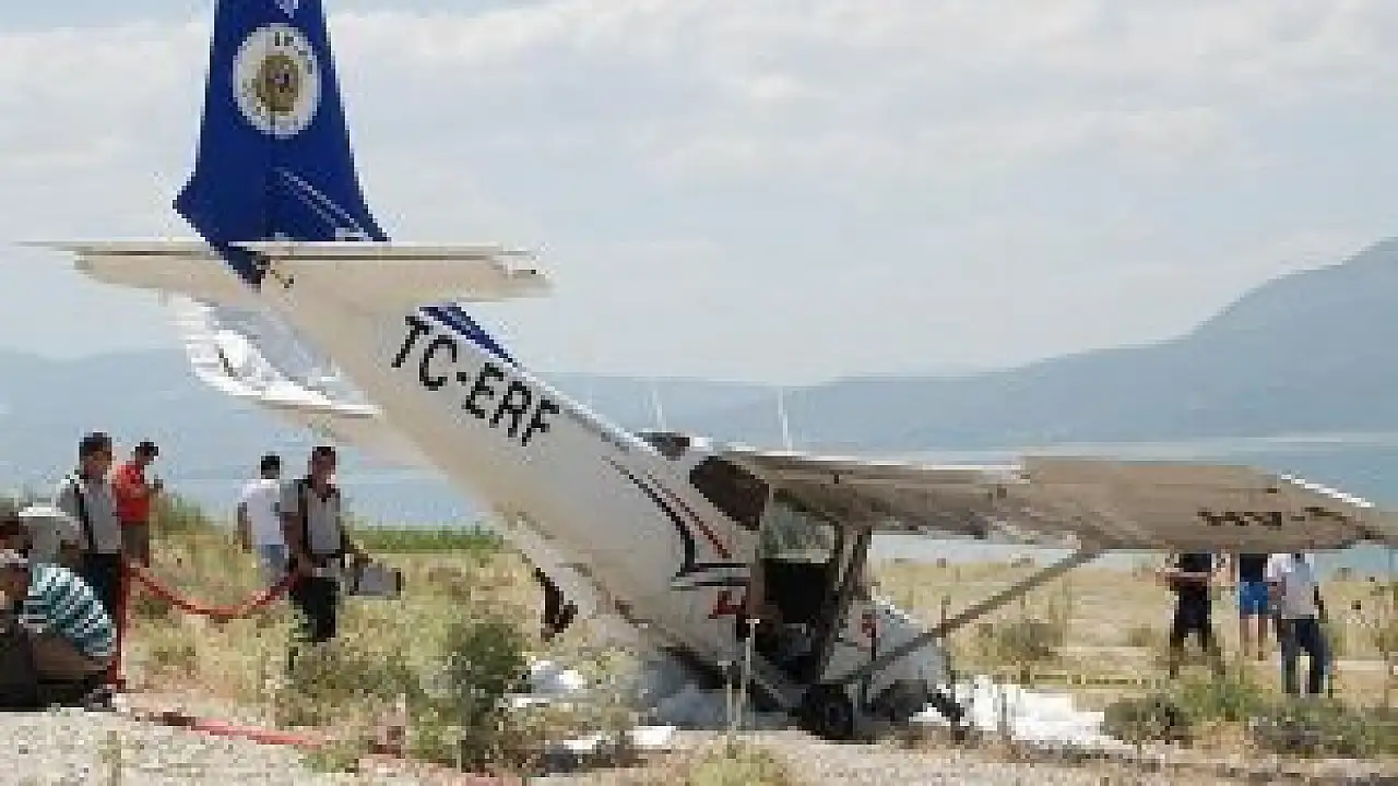 Uçak, rüzgarın da etkisiyle Burdur Gölü kıyısındaki kumluk alana sert iniş yaptı. Uçakta bulunan pilot ve öğrenci, kazadan yara almadan kurtuldu.