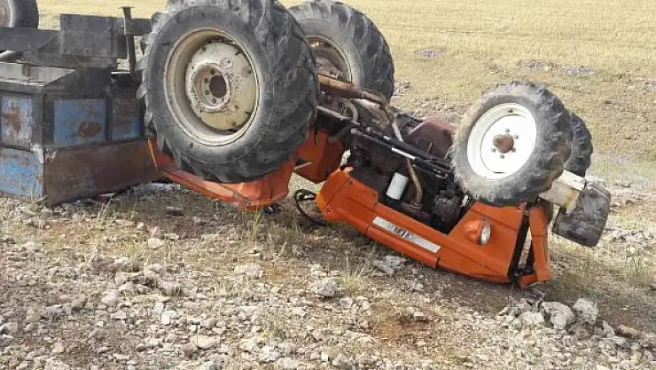 Şanlıurfa'da takla atan traktörün sürücüsü burnu bile kanamadan kurtuldu.