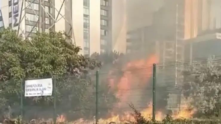 Bursa'da AVM bahçesinde yangın: Ağaçlık alan alev alev yandı