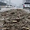 Bursa'da seyir halindeki hafriyat kamyonu tonlarca kaya ve taşı ana yola döktü. Şans eseri ölen ya da yaralanan olmadı.