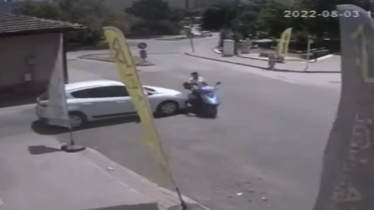 Olay, merkez Osmangazi ilçesinde meydana geldi. Edinilen bilgiye göre, anayola çıkmak isteyen otomobil, seyir halindeki motosikleti göremeyince yola çıktı. Motosikleti fark eden otomobil sürücüsü çarpmaktan son anda kurtuldu. O anlar ise saniye saniye güvenlik kameralarına yansıdı.