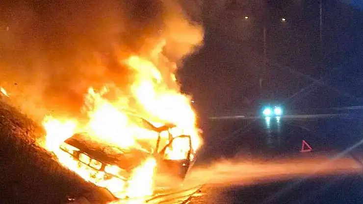 Edinilen bilgiye göre, seyir halindeki otomobil bir anda alev aldı. Sürücü hemen aracı yol kenara çekerek alev topuna dönen otomobilden canını kurtardı. İhbar üzerine olay yerine gelen polis ekibi çevrede güvenlik önlemi alırken itfaiye ekipleri de yangını söndürdü. Otomobil hurda yığınına dönerken yaralanan kimse olmadı.