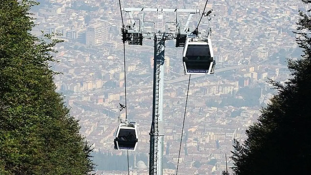 Bursa'da şiddetli lodos nedeniyle teleferik seferleri iptal edildi.