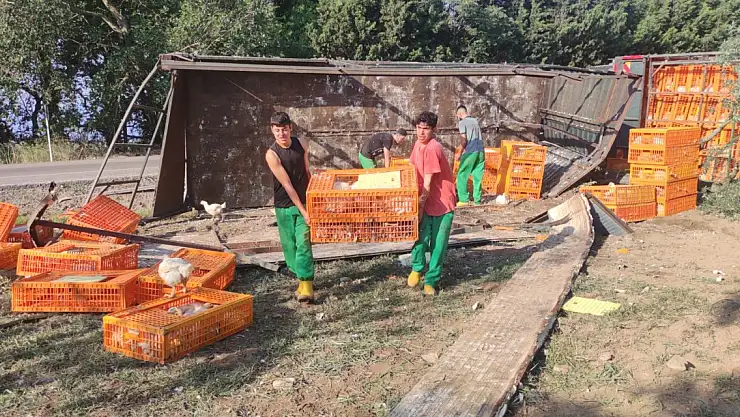 Kaza, saat 05.00 sıralarında, Orhangazi-İznik yolu Keramet Ilıca kavşağında meydana geldi. Bilecik'ten yüklediği 5 bin canlı tavuğu Bandırma'ya götüren Bora Varyemez'in (32) kullandığı 10 ACH 262 plakalı TIR, kontrolden çıkarak devrildi. Kazada kafeslerdeki yüzlerce tavuk öldü. Tavuk ölüleri, başka TIR'a yüklenerek yoldan kaldırıldı. Kaza ile ilgili soruşturma başlatıldı.