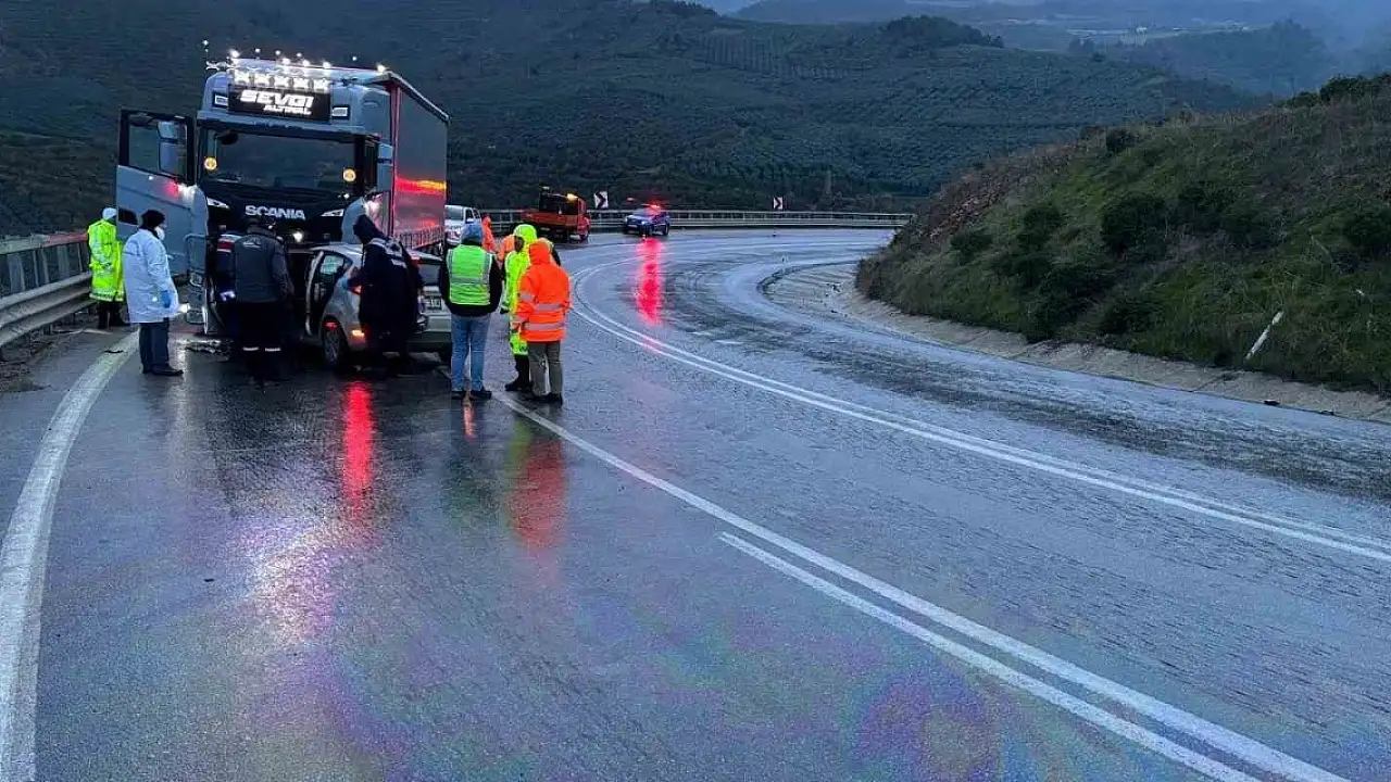 Bursa'da tır ile otomobil kafa kafaya çarpıştı: 1 ölü, 2 yaralı