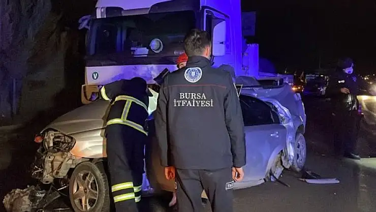 Bursa'da Erkan Aktaş (32) idaresindeki otomobilin direksiyon hakimiyetini kaybetmesi sonucu karşı yönden gelen Cumhur Ç. idaresindeki tır ile kafa kafaya çarpıştı.
