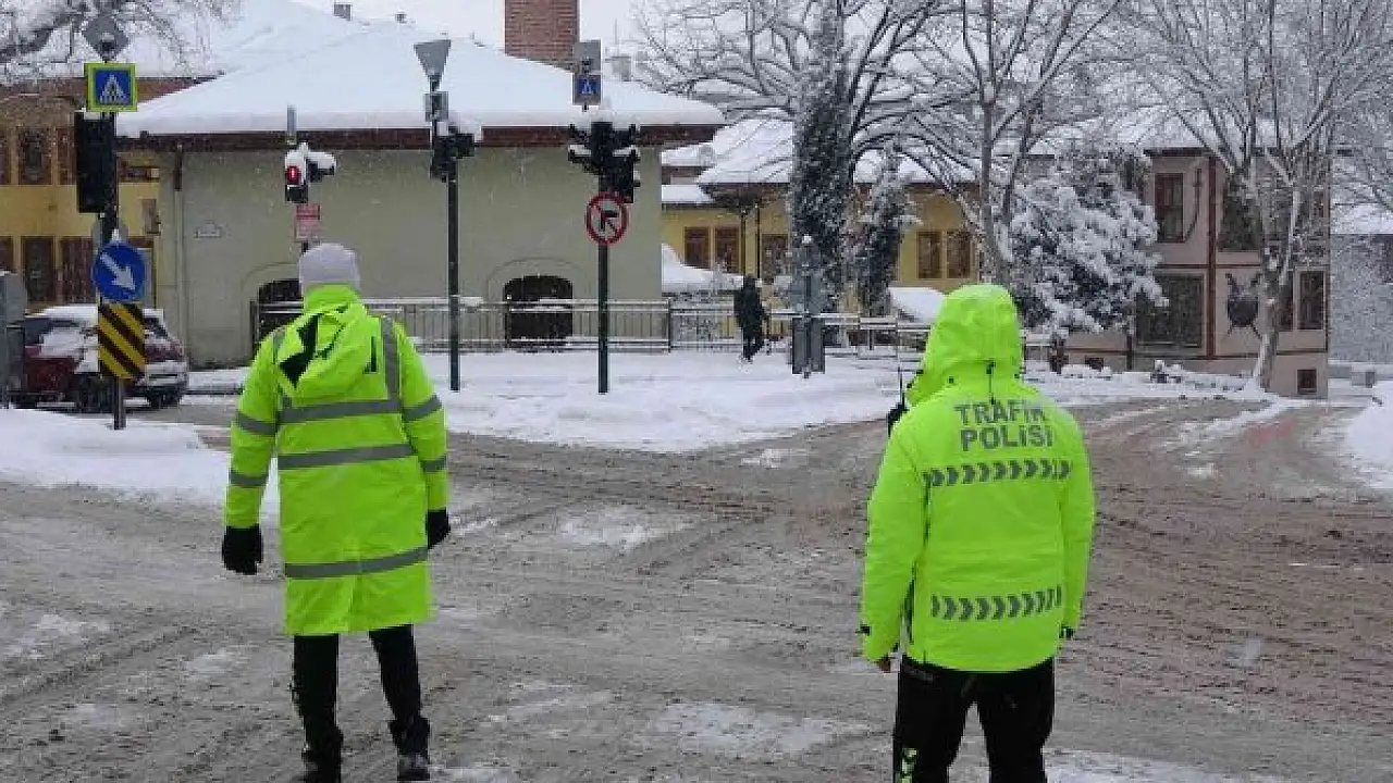 Bursa'da trafik polislerinin karla mücadelesi takdir topladı