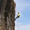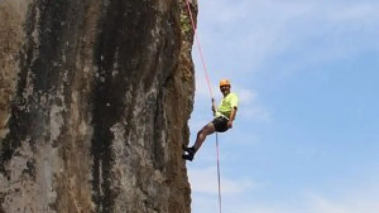 Uludağ Dağcılık Üyesi dağcılar, Bursa'da 90 metre yükseklikteki duvar gibi kayalara ölümü göze alarak tırmandı.