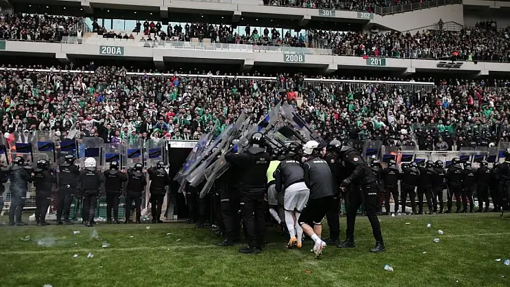 Maçın ilk düdüğü çaldıktan sonra tribünden atılan maddeler nedeniyle karşılaşma zaman zaman durdu.