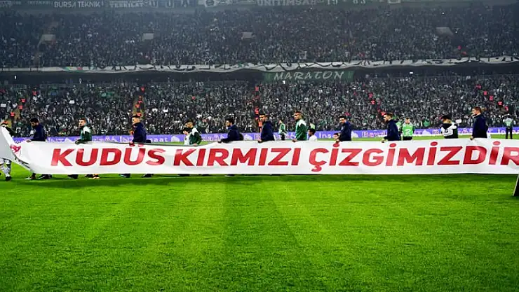 Spor Toto Süper Lig'in 15. hafta mücadelesinde Bursaspor ve Fenerbahçeli futbolcular, sahaya beraber üstünde 'Kudüs kırmızı çizgimizdir' yazılı pankartla çıktı.