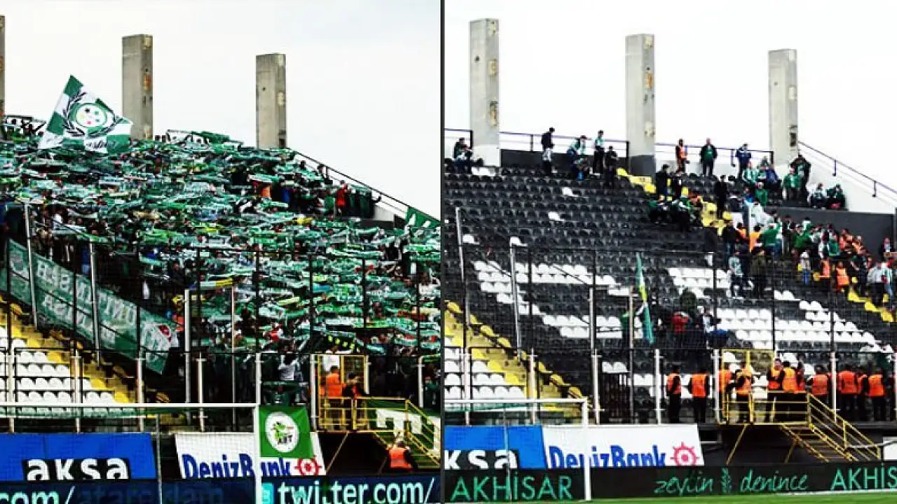 Spor Toto Süper Lig’in 28. haftasında Bursaspor, Manisa 19 Mayıs Stadyumu’nda Akhisar Belediyespor ile karşılaşıyor. Müsabakanın 13. dakikasında Batalla’nın golü ile öne geçen yeşil-beyazlı takım, 14. dakikada Olcan Adın, 21. dakikada Mustafa Yumlu, 24. dakikada Sokol Cikalleshi ve 28. dakikada Vaz Te’nin golüne engel olmadı. İlk yarıyı 4-1 mağlup tamamlayan Bursaspor’da, yeşil-beyazlı taraftarlar da futbolculara ve yönetime tepki gösterdi. İlk yarının bitiş düdüğünün ardından misafir tribünü tamamen dolduran taraftarlar tribünü terk ederek dışarı çıkarken, polis ekipleri de muhtemel bir tepkiye karşı stat dışında önlem aldı.