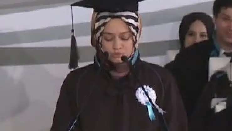 Üniversiteyi birincilikle bitiren Saliha Büşra Selman, başörtülü olması nedeniyle yaşadığı sıkıntıları anlattı, salon ağladı.
