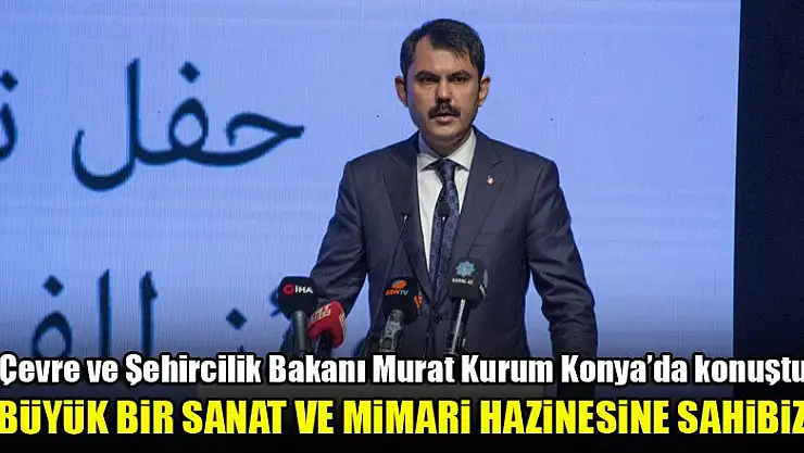 Çevre ve Şehircilik Bakanı Murat Kurum, 'Baktığımızda büyük bir sanat ve mimari hazinesine sahibiz. Bu hazineyi, yeni birikim ve tecrübelerle zenginleştirmek için çok büyük çabalar sarfediyoruz.' dedi.