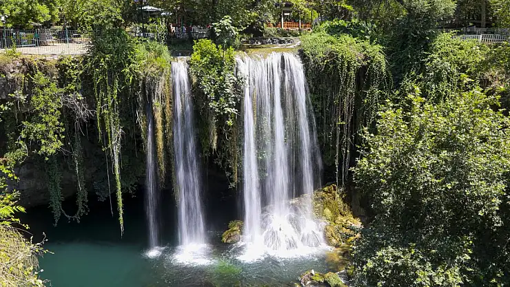 Turizm kenti Antalya'nın simge yerlerinden, Yeşilçam filmlerine de sahne olan Düden Şelalesi'nin suyu, hava sıcaklığının mevsim normallerinin 10 derece üzerinde seyrettiği bugünlerde gözle görülür derecede azaldı. Yağışın yoğun olduğu kış aylarında saniyede 94 metreküp debiyle akan su, bugünlerde 8 metreküpe kadar düştü. Antalya Büyükşehir Belediyesi de azalan su seviyesine çevre kaynaklardan su aktarımı yaparak şelaleyi beslemeye çalışıyor. Gün içinde 6 bin ziyaretçinin giriş yaptığı şelalede, ziyaretçiler mağaralarda serinleyip, şelalede fotoğraf çektirerek anı ölümsüzleştiriyor.