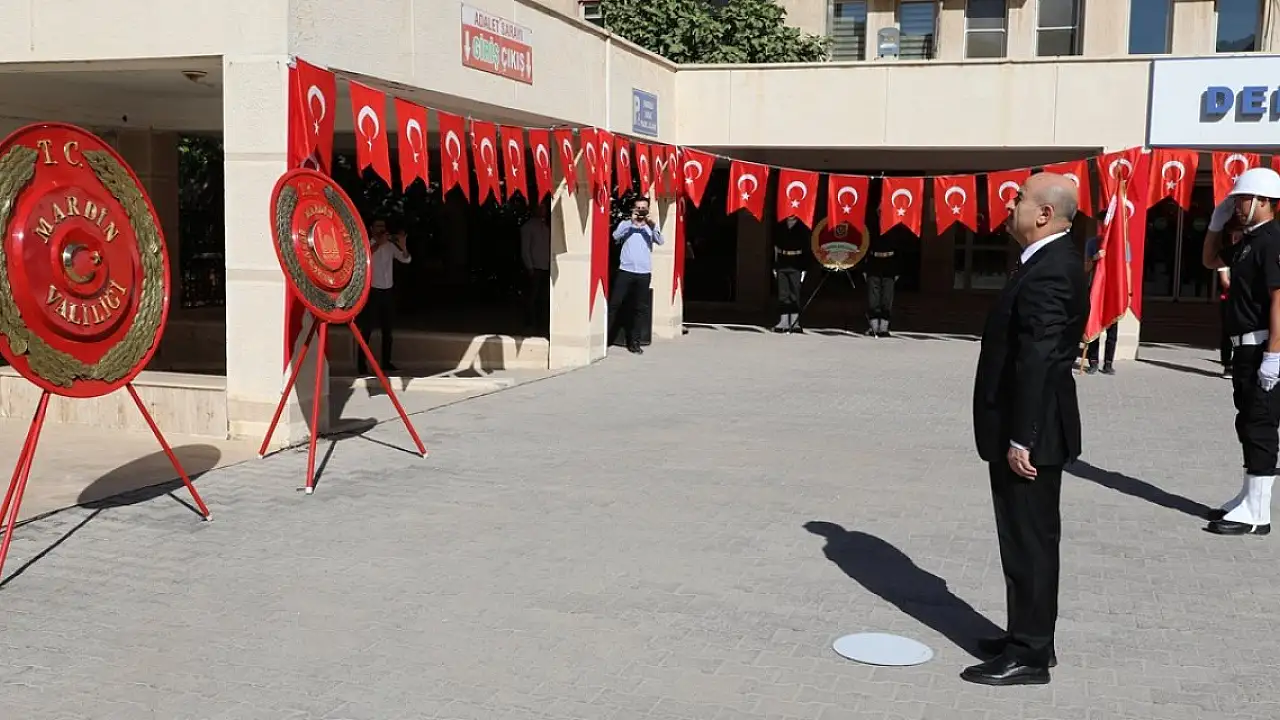 Mardin'de Hükümet Konağı önünde düzenlenen törende Atatürk Anıtı'na çelenk sunuldu, saygı duruşunda bulunuldu, İstiklal Marşı okundu.