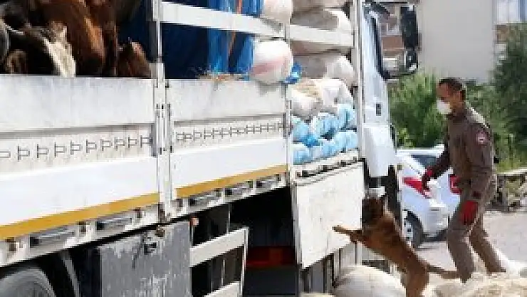 Polis ekipleri, kent merkezi yakınlarında durdurdukları U.P. idaresindeki 76 DC 043 plakalı 20 büyükbaş hayvanın yüklü olduğu tırda arama yaptı.