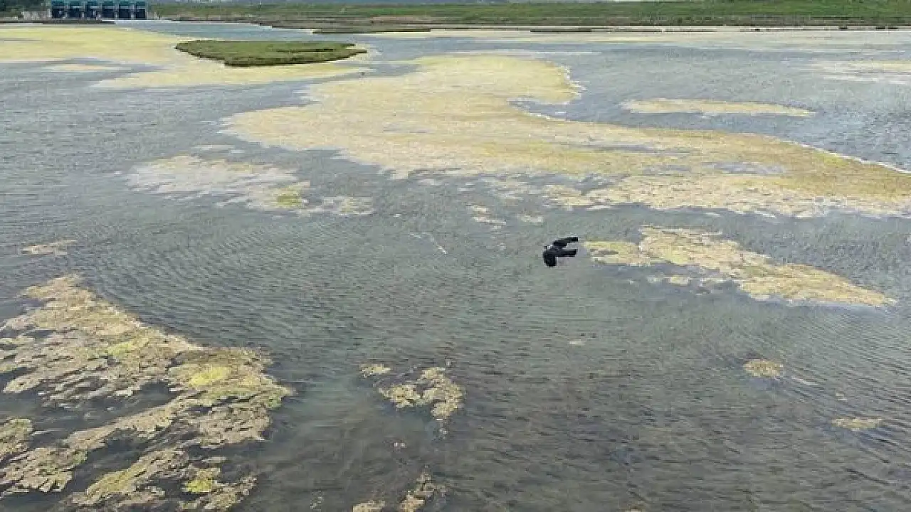 Büyükçekmece Gölü'nün yüzeyinde yosun tabakası oluştu