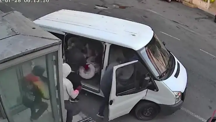 Büyükçekmece'deki sanayi sitesine sabah erken saatlerde minibüsle gelen 5 şüpheli, elektrik malzemeleri satan dükkandan 8 bin 500 metre uzunluğunda kablo çaldı. Dükkana girdikten sonra panikleyip kaçan 5 şüpheli, kısa süre sonra geri dönüp 167 bin TL değerindeki kabloları çaldı. O anlar güvenlik kamerasıyla kaydedildi.Büyükçekmece Cumhuriyet Mahallesi sanayi sitesinde elektrik malzemeleri satan bir dükkana, 28 Temmuz Perşembe günü saat 06.00 sıralarında minibüsle gelen 5 şüpheli, 167 bin TL değerindeki 8 bin 500 metre uzunluğunda kablo çaldı. Şüpheliler dükkandaki alarm sisteminin çalışmasına rağmen kabloları minibüse yüklemeyi sürdürdü. Hırsızlardan birinin, bir ara tedirgin olup arkadaşlarını uyardığı ve geldikleri minibüsle oradan ayrıldıkları dikkat çekti. Kısa süre sonra yeniden dükkana dönen hırsızlar, 10 dakika içinde binlerce metre uzunluğundaki kabloyu minibüse yükledi. Hırsızları fark eden bir TIR şoförü korna çalınca, şüpheliler tekrar minibüse binerek olay yerinden kaçtı. Yaşanan hırsızlık anları, güvenlik kamerası kayıtlarına girdi.
