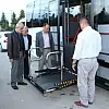 Yolcu otobüslerinde, araca engellilerin rahat inip binebilecekleri uzaktan kumandayla komut edilen bir sistem de yer alıyor.