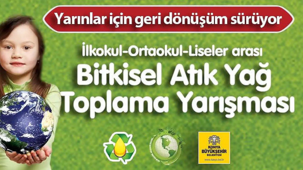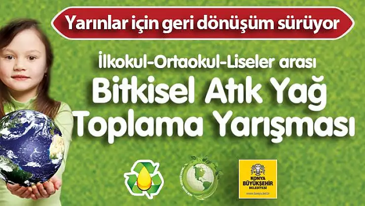 Bitkisel atık yağların çevreye verdiği zararı önleyerek ekonomiye kazandırmak amacıyla çeşitli çalışmalar yürüten Konya Büyükşehir Belediyesi şimdi de ilkokul, ortaokul ve liseler arası 'Bitkisel Atık Yağ Toplama Yarışması' düzenliyor.