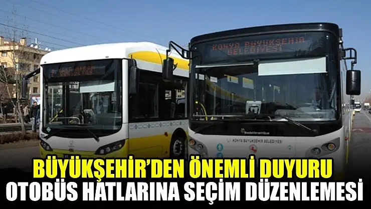 Konya Büyükşehir Belediyesi, 31 Mart Pazar günü yapılacak yerel seçimler dolayısıyla bazı otobüs hatlarına sabah 06.00 ve 06.15’e ilave seferler koyduğunu açıkladı.