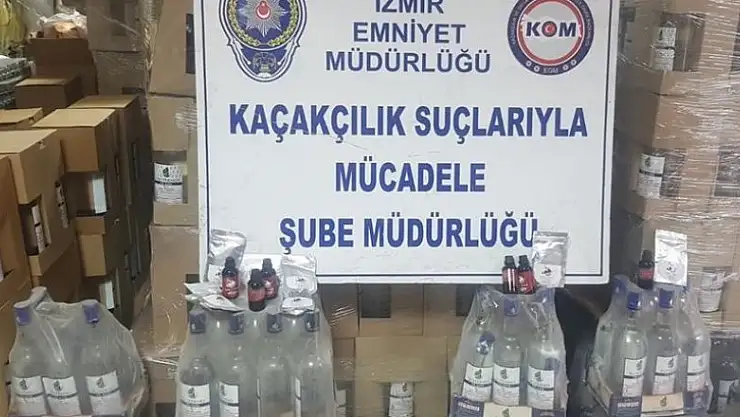 Işıkkent Dökümcüler Sitesi'ndeki iş yerine operasyon düzenleyen ekipler, yasa dışı üretilen 6 ton etil alkol, çeşitli içki türlerine ait bin paket kit, çok miktarda içki aroması, 500 bin etiket ve 500 bin boş ambalaj ele geçirdi.