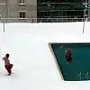İstanbul'da yoğun kar yağışı etkisini sürdürürken, 3 arkadaş buz gibi havada havuza girdi. 3 kafadarın havuza girmesiyle çıkması bir oldu.