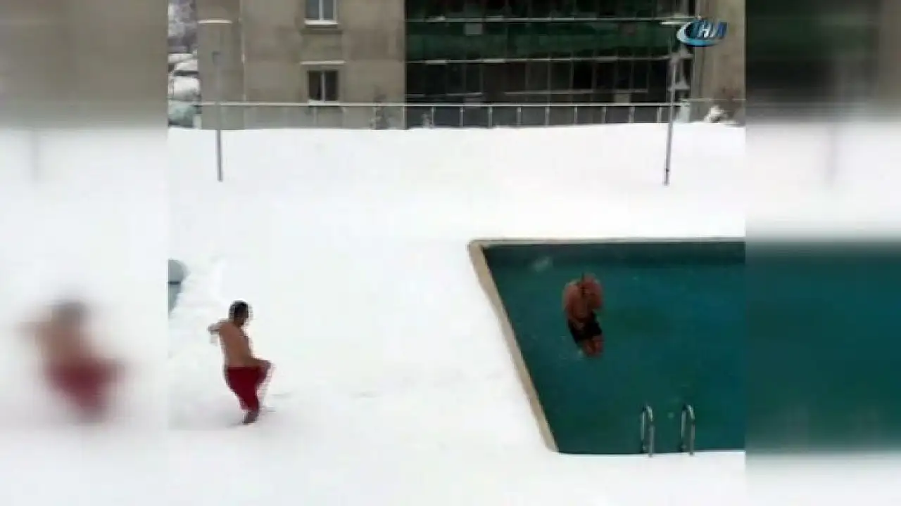 Beylikdüzü'nde bir sitede yaşayan üç arkadaş yoğun kar yağışı altında havuza girdi. Hava durumu -2'yi gösterirken 3 arkadaş üzerlerini çıkartarak havuza koştu. Buz gibi suya giren 3 kafadarın havuza girmesiyle çıkması bir oldu. Soğuk havada havuza giren arkadaşları gören vatandaşlar ise şoke oldu. 3 arkadaşın soğuk hava nedeniyle dışarıda duramadıkları ve koşarak siteye girdikleri görüldü.