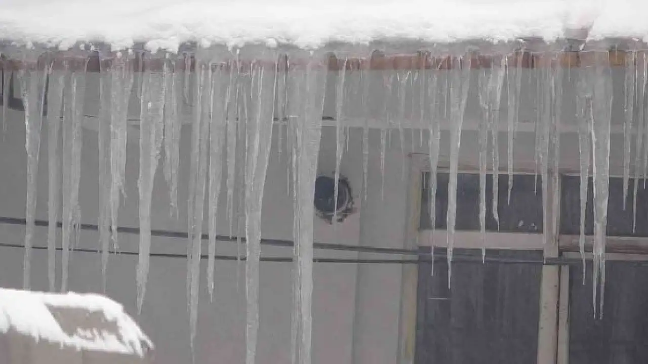 Ardahan'da kar yağışının ardından etkili olan Sibirya soğukları nedeniyle çatılarda oluşan metrelerce buz sarkıtı tehlike saçıyor.