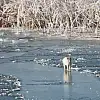 Buz tutan göl üzerinde yürüyen kediler besin arıyor
