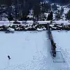 Buz tutan göledin üzerinde tehlikeli gezinti