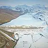 Tarım arazilerinin sulamasında kullanılan barajın buz tutmuş halini gören sürücüler de mola vererek bu eşsiz güzelliği izliyor.