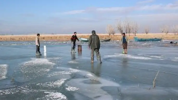 Balıkçı Şevket Erdoğan ise, buz tutan gölün üzerinde herkesin okey oynayamayacağını belirterek, “Buza çıkmak cesaret ister” diye konuştu. Erdoğan, göl kıyılarının buz tutması sonucu işlerinin durgun olduğunu, avlanmaya çok fazla çıkamadıklarını belirterek, “Ağlarımızın yarısı buzun altında duruyor. Bu günlerde buzları teknelerimizin motor gücüyle kırabilmek için sadece petrollere çalışıyoruz ve çok yakıt yakıyoruz” ifadelerini kullandı.