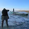 Buzların arasında kalan teknelerini hareket ettirip açıklara çıkarabilmek için seferber olan balıkçıları fotoğramak amacıyla kıyılardaki buz tabakasının üzerine çıkarak fotoğraf çeken fotoğrafseverler, kartpostallık görüntüler elde etti.