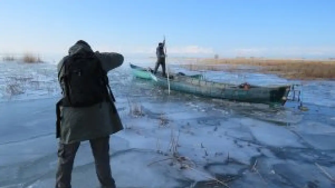 Beyşehir Gölü kıyılarının buz tutması üzerine, fotoğraf tutkunları en güzel kareyi yakalamak için adeta bölgeye akın etti.