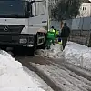 Buzda kayan çöp kamyonu devrilme tehlikesiyle karşı karşıya kaldı