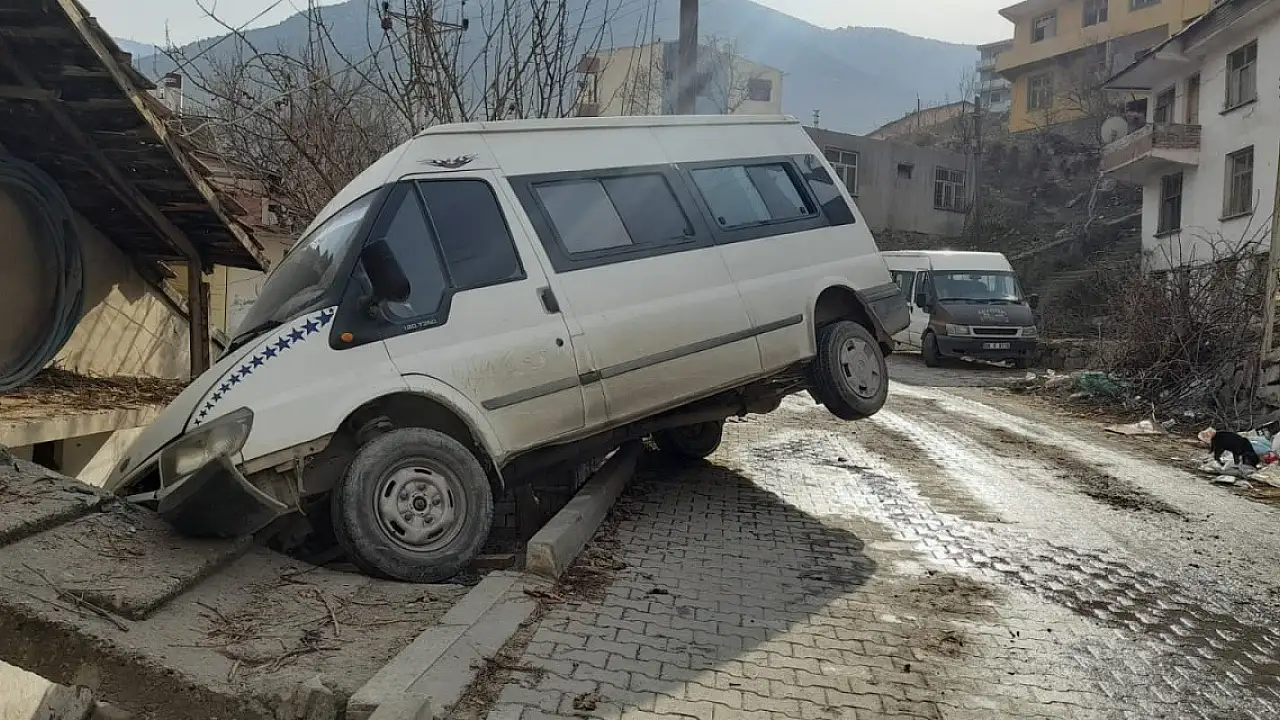 Çekiciyle bulunduğu yerden kaldırılan minibüsün sürücüsü Albayrak, "Taşınma sürecinde su tesisatları kesik olduğundan yollarda biriken su buzlanmış. Biz de kaydık; Allah'a çok şükür önemli bir şey olmadı" dedi. (DHA)