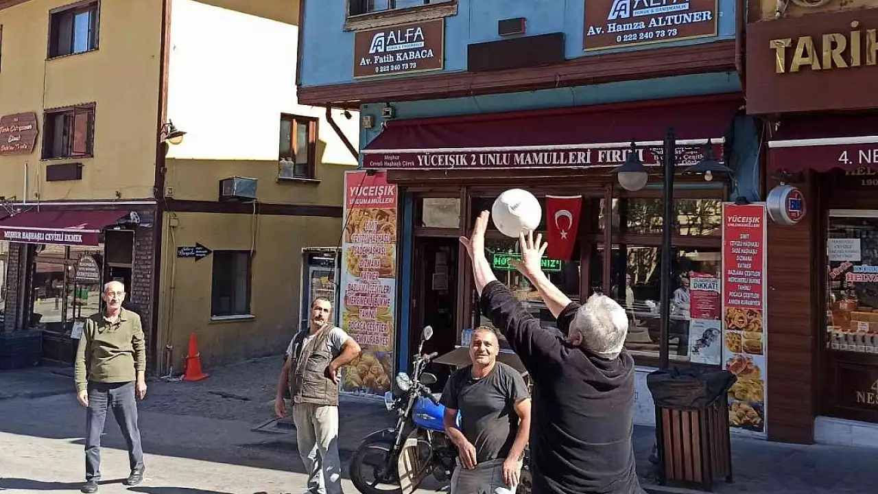 "Ben Odunpazarı esnafıyım. Şu anda top oynamaktayız. Az önce topumuzu oynadık ve şimdi dinlenmeye geçtik. Çünkü dükkânlarda kimse yok. Bomboş yatıyoruz. Sabahtan beri siftah dahi yapamadık. İş yapamadığımız için de top oynamaya karar verdik. Ocağımıza incir ağacı diktiler. Allah hepsinden razı olsun."
