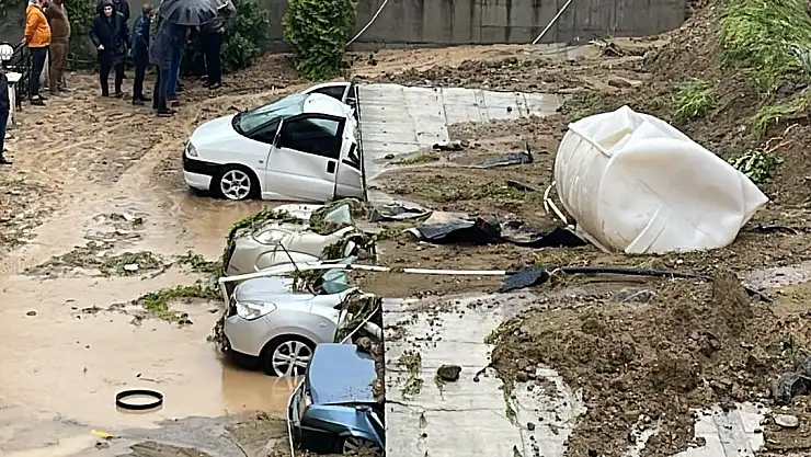 Kentte etkili olan sağanakta, Canik ilçesi Uludağ Mahallesi Mahmudiye Caddesi'nde bir apartmanın otoparkının istinat duvarı çöktü. Park halindeki 5 araç, istinat duvarının altında kaldı.