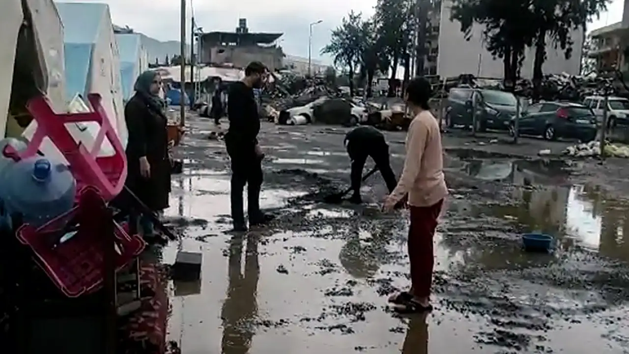 İskenderun'da öğle saatlerinde başlayan şiddetli yağış hayatı olumsuz etkiledi. Kahramanmaraş merkezli büyük depremlerden etkilenen ve evleri hasar alan depremzede vatandaşların yaşadığı ilçenin çeşitli yerlerinde bulunan çadır kentlerin ve konteynerlerin etrafı ise çamur oldu.