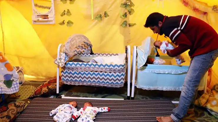 Hinit Cuma El Huseyno ise "Bir bebek beklerken Allah bize dört bebek verdi. Şimdi 5 çocuğumuz var. Savaş nedeniyle çok mağduruz. Çadır çok sıcak ve bebeklerin bakımı zor. Tek umudumuz Türkiye ve inşallah bir an önce savaş biter bizler de bebeklerimizle evimize döneriz" diye konuştu.