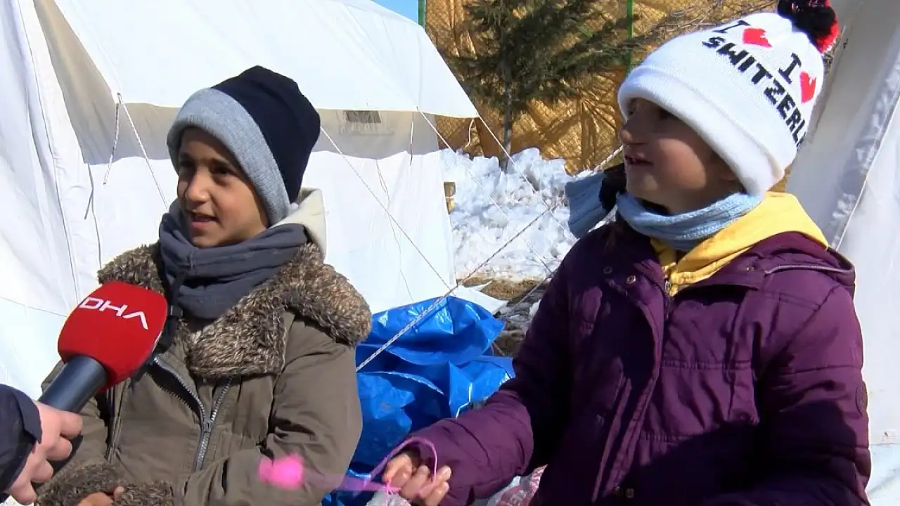 Malatya Erkenek Mahallesi'nde, deprem sonrası hayat çadırlarda devam ediyor. Çadırda yaşayan çocuklar, yaşadıkları korkuyu oyunlar oynayarak atlatmaya çalışırken, çadır okul, öğretmen ve hikaye kitabı istiyor. 9 yaşındaki Talha Ünlü, çadırlara hikaye kitabı gelmesini isteyerek, "Buraya hikaye kitabı gelsin. Öğretmen de gelsin. Buraya çadır okul yapsınlar, sıra koysunlar. Biz orada ders çalışırız. İsteklerim bu kadar" diye konuştu