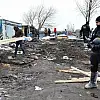 İş makineleri, polis arabaları bir yanda tahliye alanında sığınmacılardan kalan eşyaları kamyonlara yüklerken gönüllü yardım görevlileri ise diğer tarafta sığınmacılarla beraber kendi kurdukları barakaları kendi imkanlarıyla taşımaya çalışıyor.